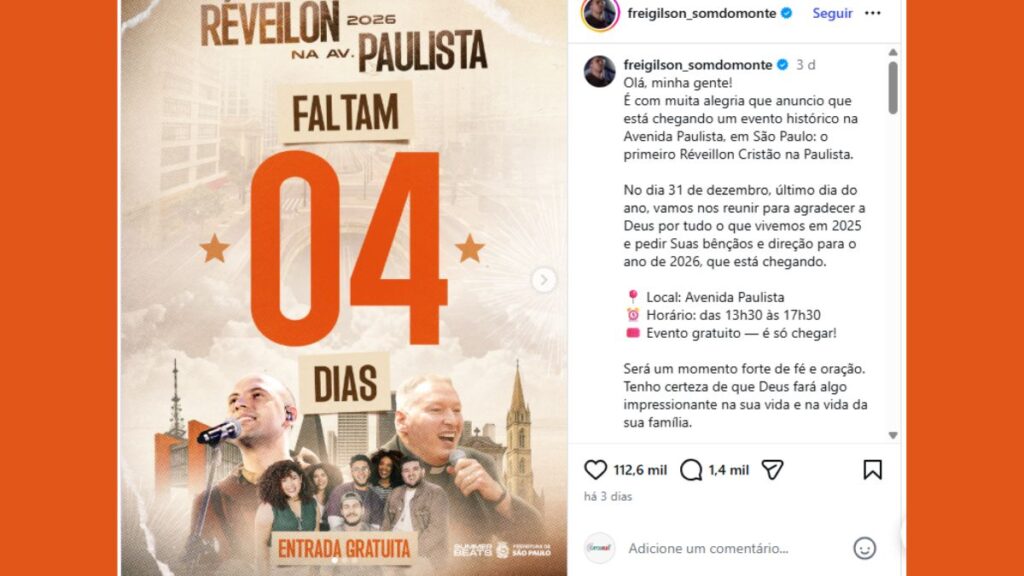 A Avenida Paulista, em São Paulo, será palco de um momento inédito no dia 31 de dezembro de 2025: o primeiro Réveillon Cristão na Paulista.